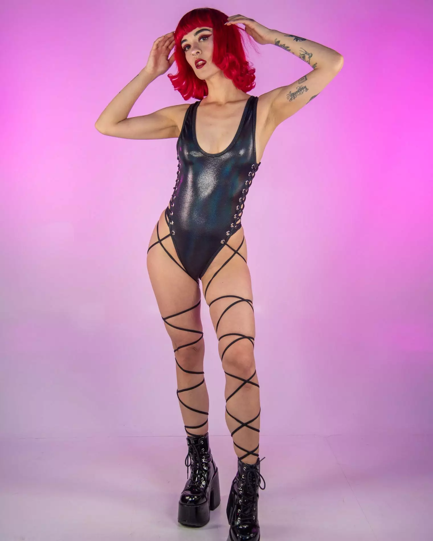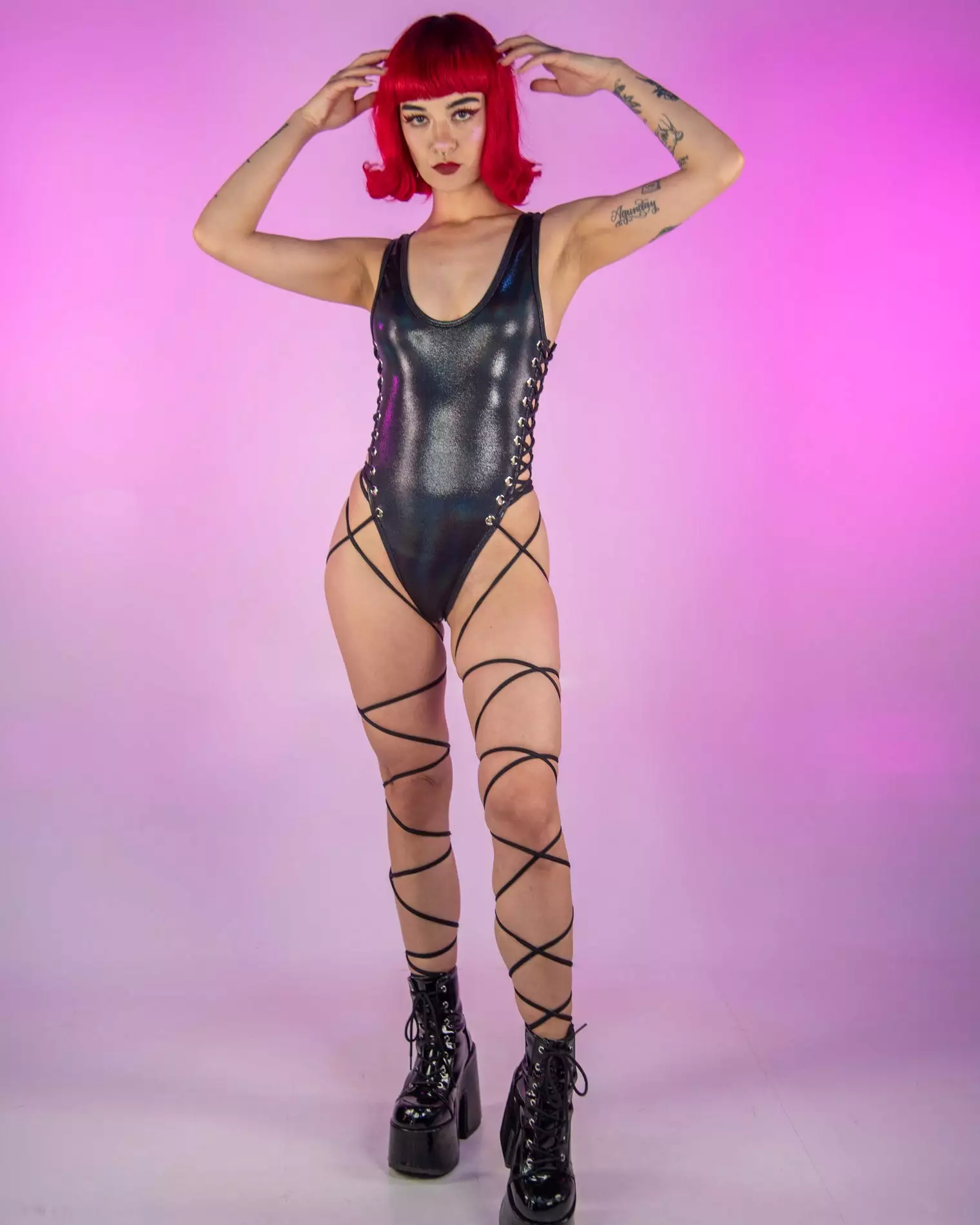Bound To Me Black Spectrum Full-Body Lace-Up Bodysuit