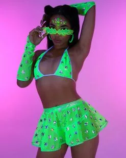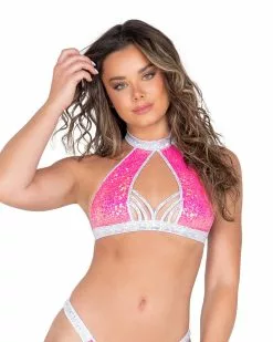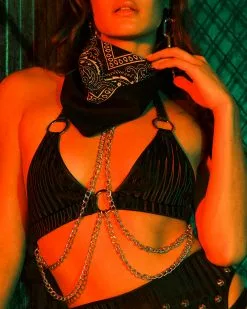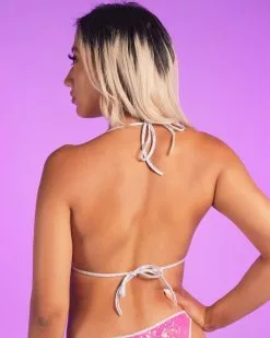 Roma Diamond Rodeo Sequin Fishnet Triangle Tie With Fringe Detail