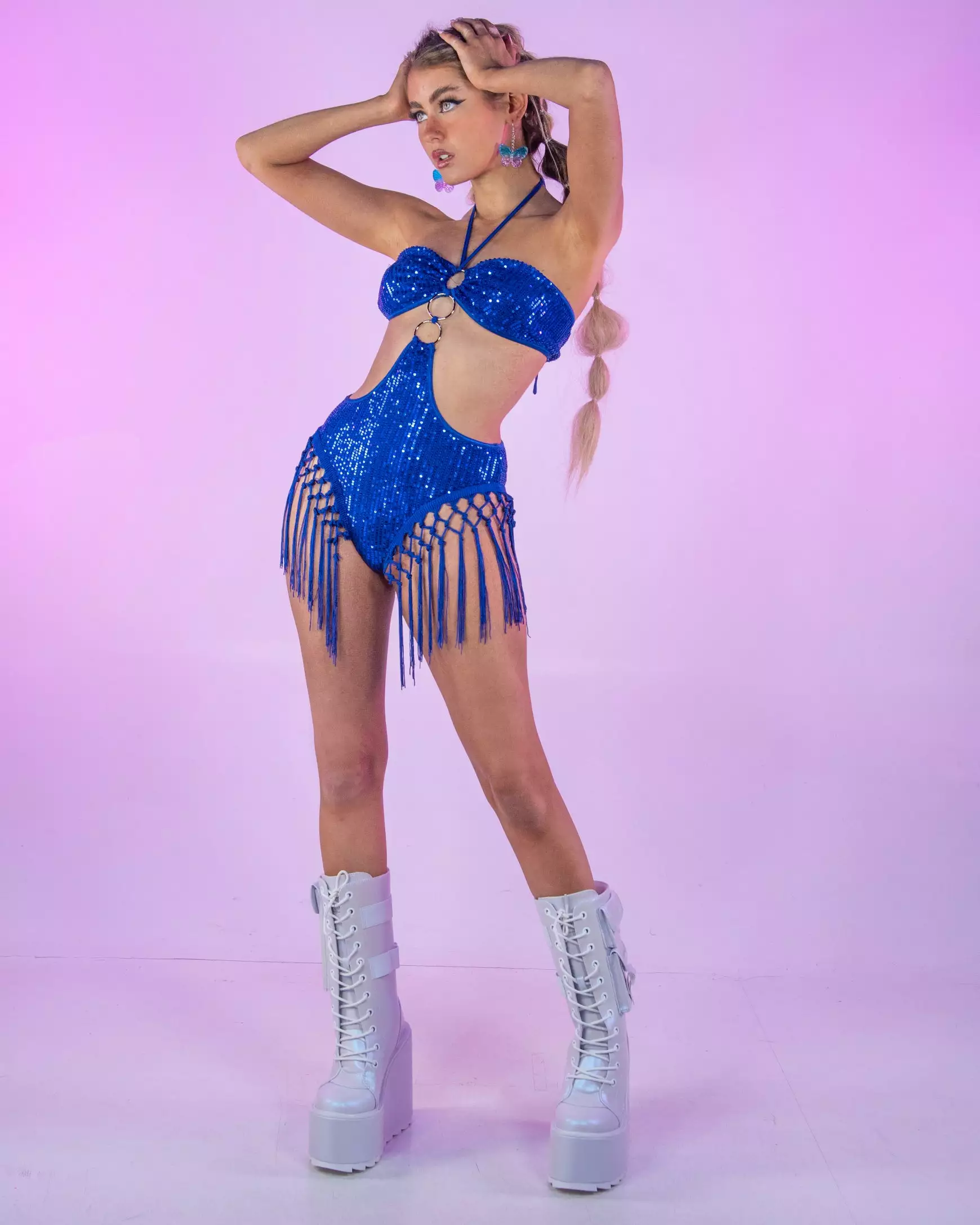 Sequin and Fringe Mirage O Ring Bodysuit Romper