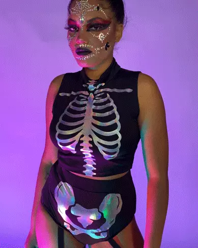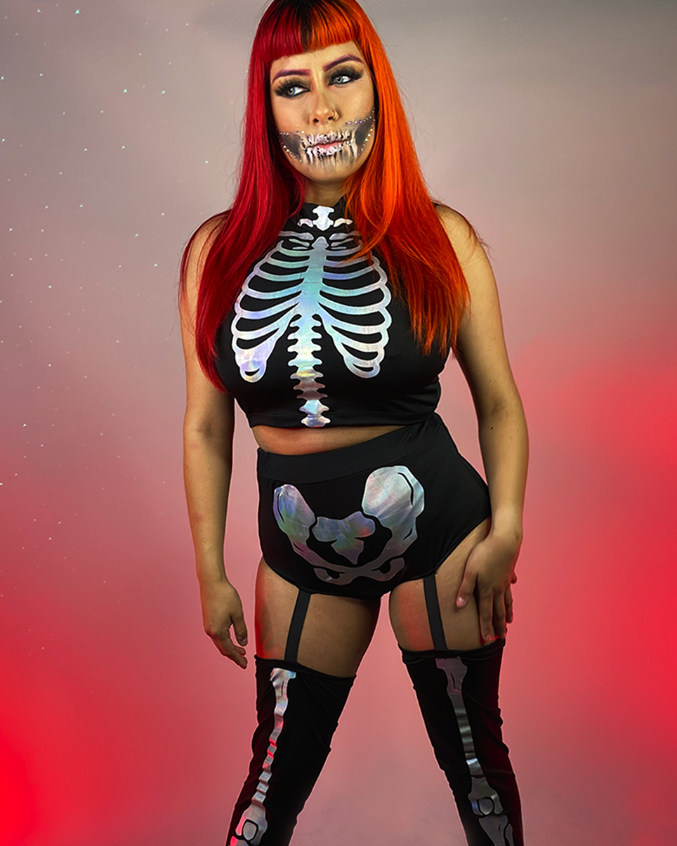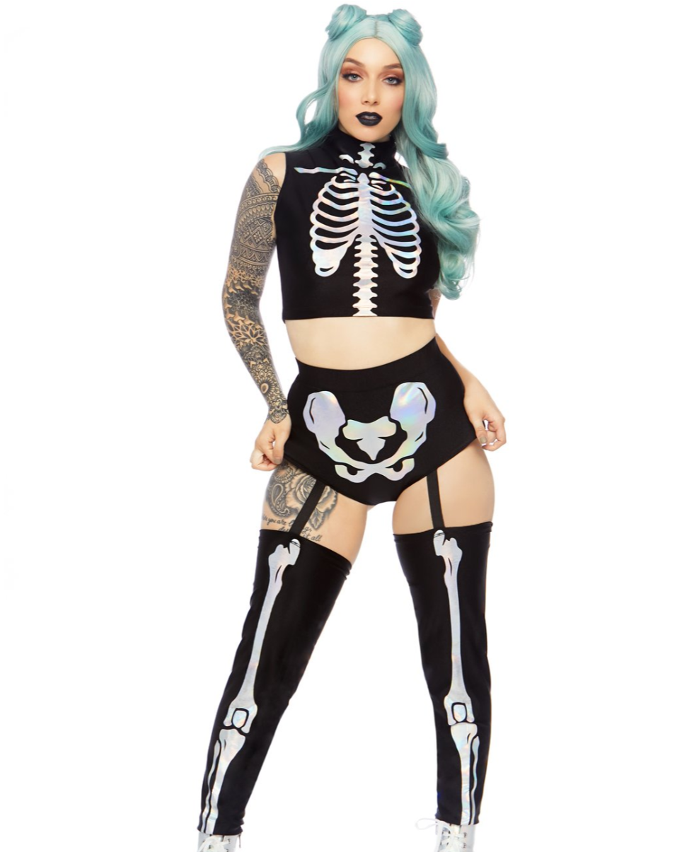 LEG AVENUE 3pc Holographic Skeleton W Attached Leggings