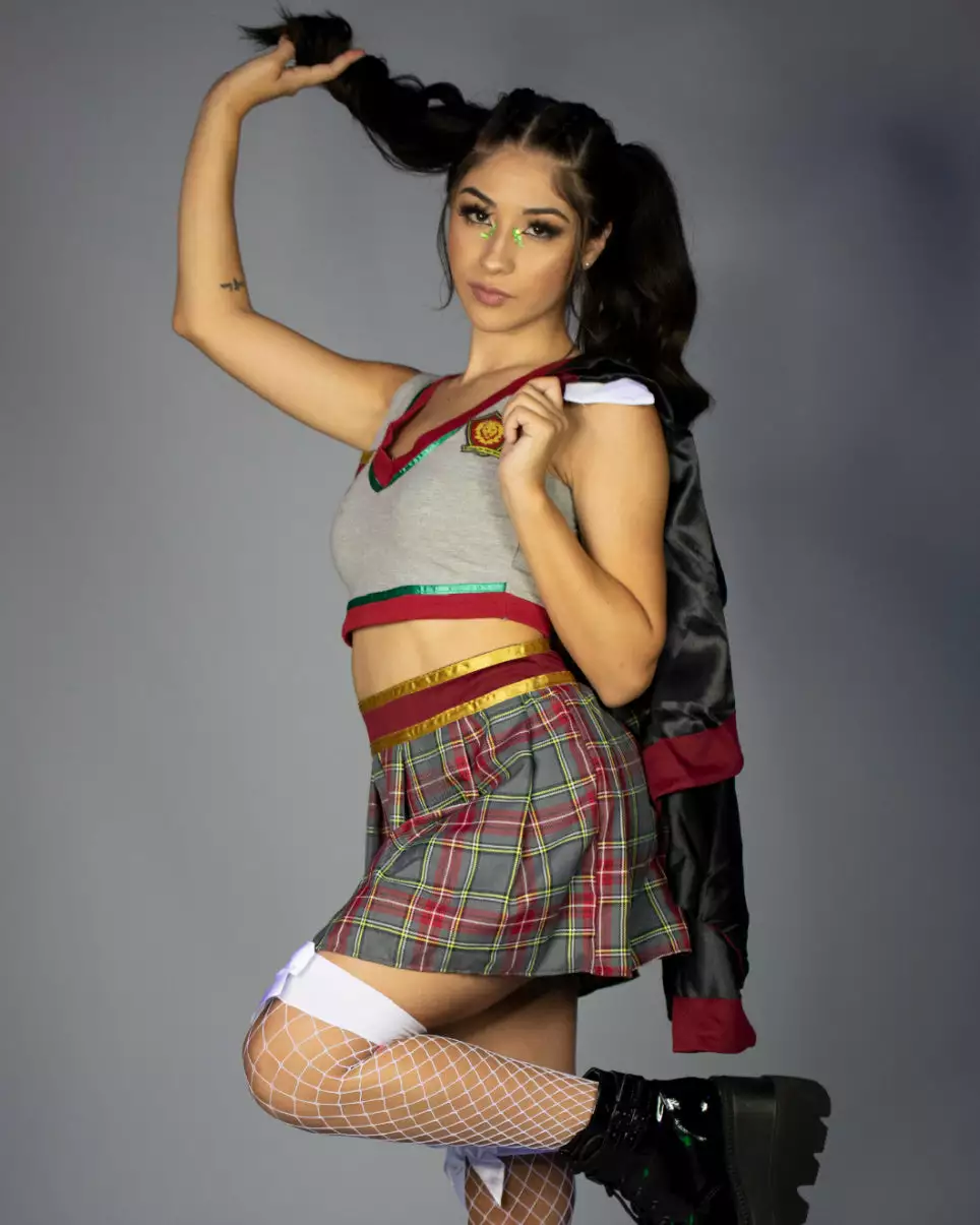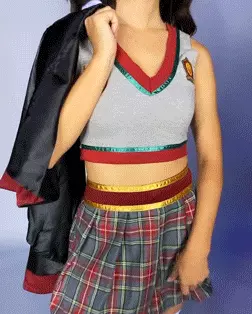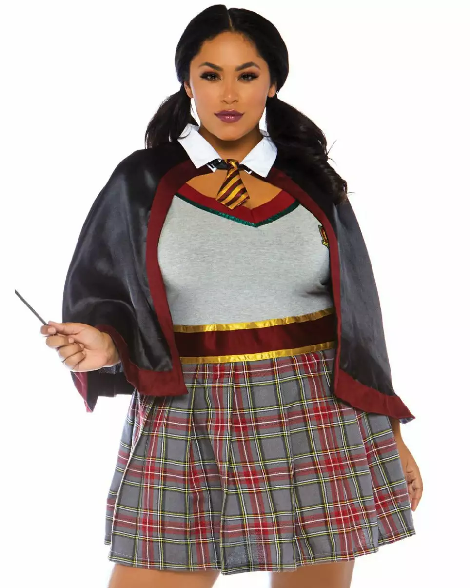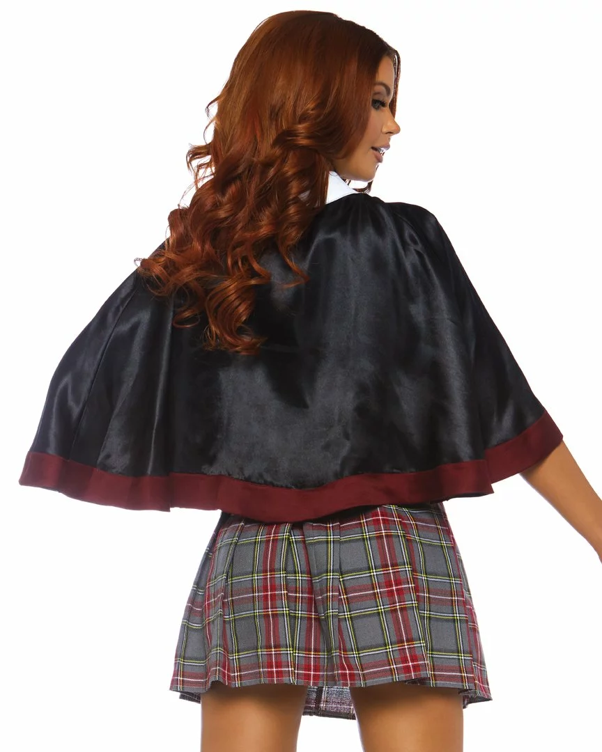 You’ll have them all under your spell on Halloween night in this magical 3 PC Spellbinding School Girl costume. Your bewitching look includes a sexy crop top with badge accents, a high waist plaid school girl skirt, and the matching cape with the iconic tie. Complete your look with Leg Avenue knee highs. Magic wand not included.