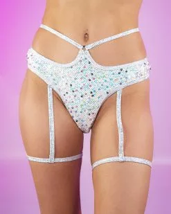 Roma Diamond Rodeo Sequin Fishnet High Waisted Shorts W/ Attached Garter