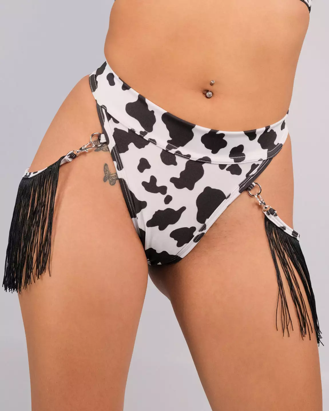 Stay lookin’ fierce while ur ridin’ into town in Rolita Couture’s fringe high cut bottoms! With intricate details and fashionable style, ur guaranteed to turn heads in this seductive outfit! Pair with Rolita Couture’s Sunshine Fringe Wrap Top for a complete look!
