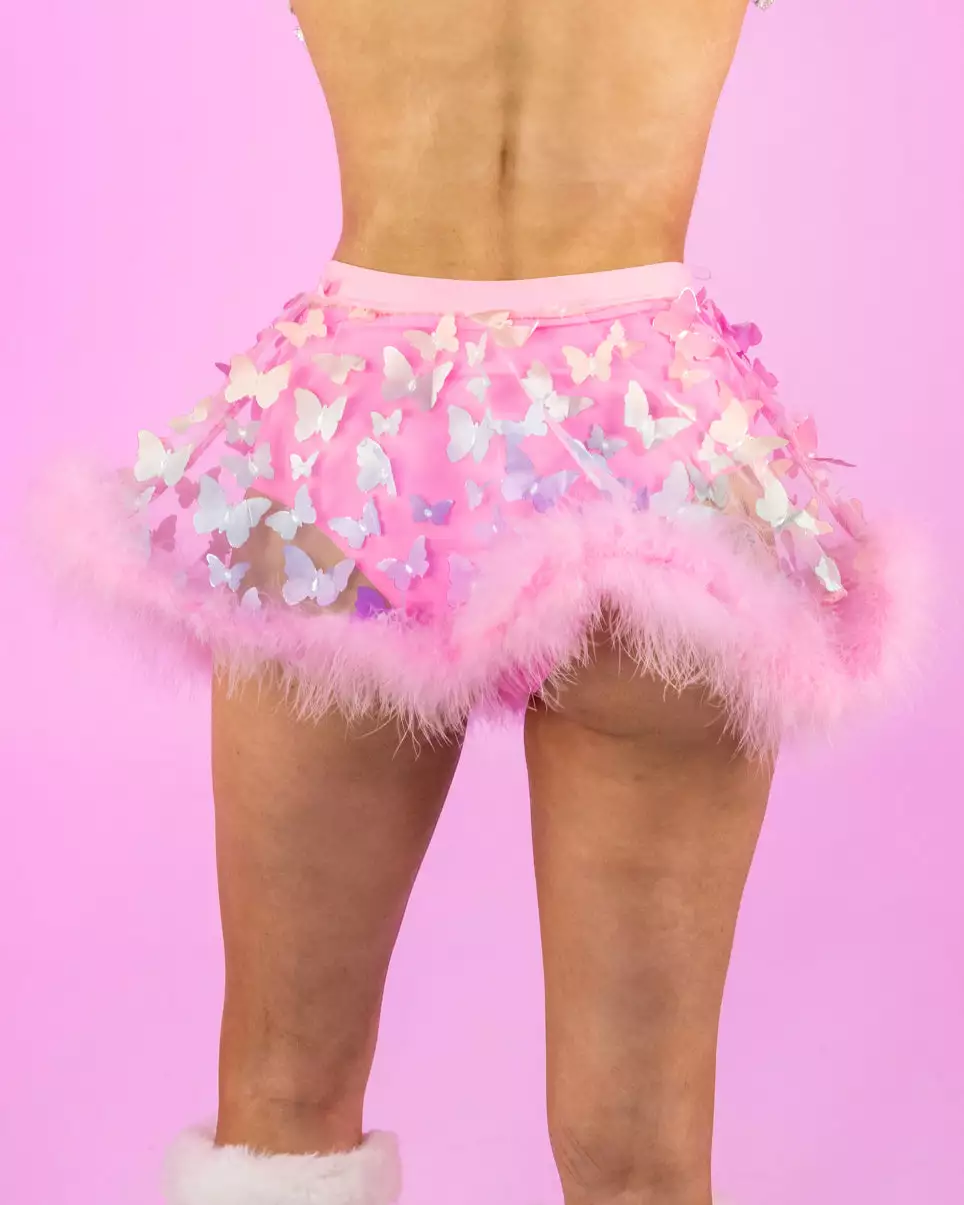Butterfly Oasis Multi Pink Sheer Skirt with Marabou Trim