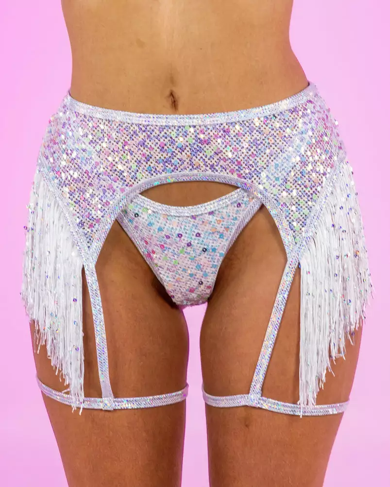 Roma Diamond Rodeo Sequin Fishnet Garter Belt W/ Sequin Fringe Detail And Garter Snap