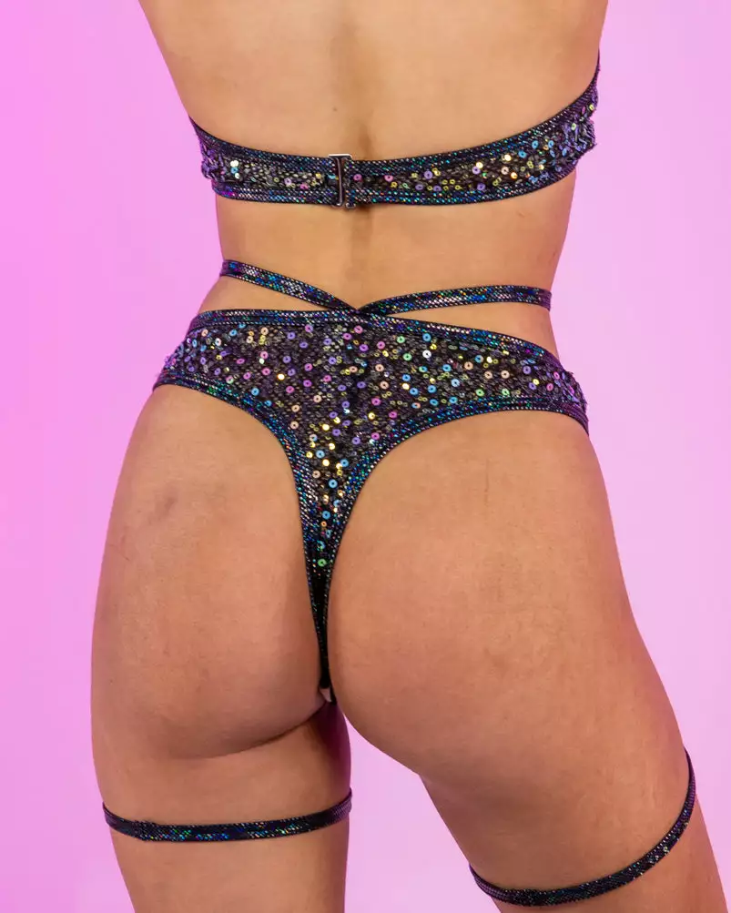 Roma Diamond Rodeo Sequin Fishnet High Waisted Shorts W/ Attached Garter