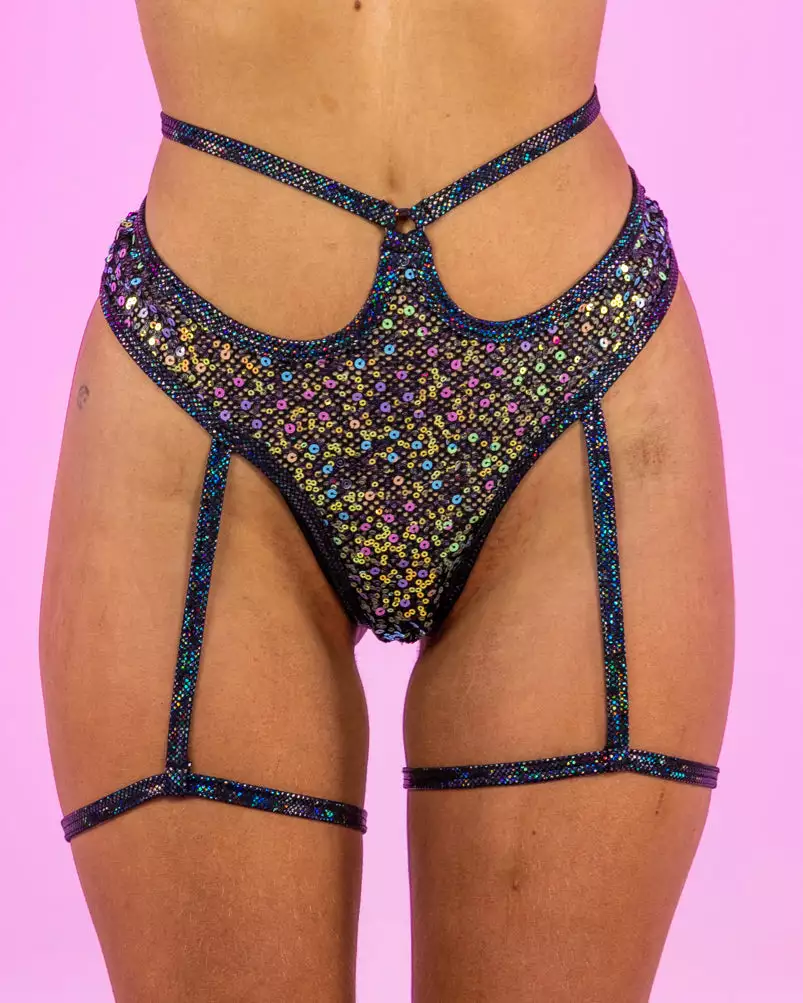 Diamond Rodeo Sequin Fishnet High Waisted Shorts w/ Attached Garter