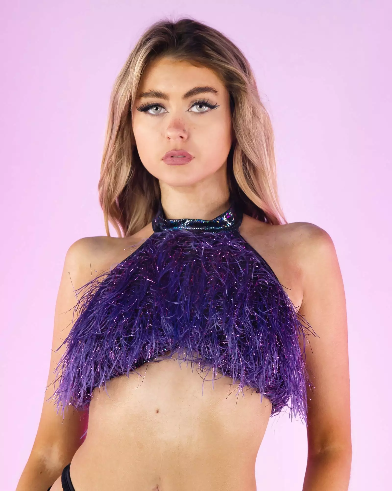 Roma Funkmaster Faux Fur Cropped Halter Neck Top