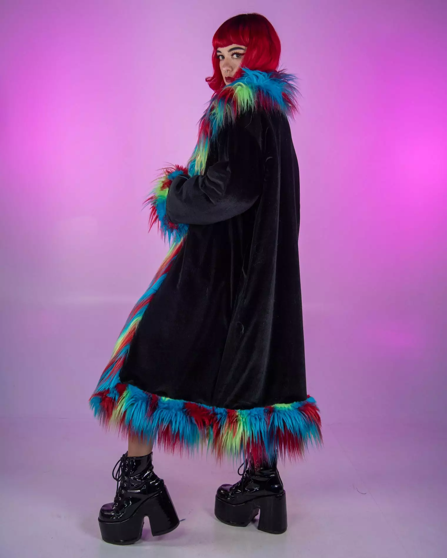 - Wild Nights Faux Fur Velvet Lining Mid-Length Coat